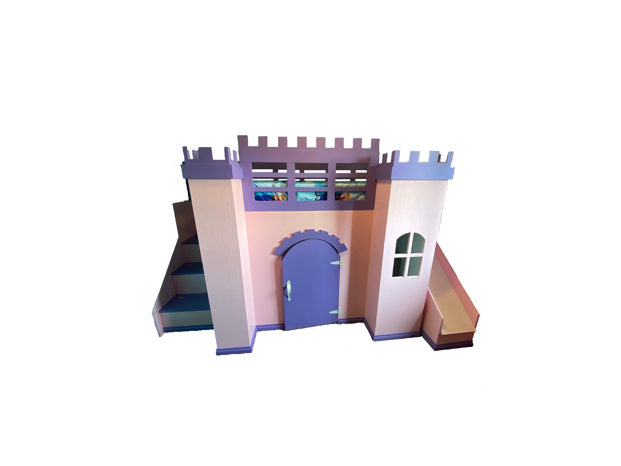 This castle loft bed includes stairs with built-in storage, a slide, and an inner playhouse. Its modular design allows for modifications to be made to better fit your space.