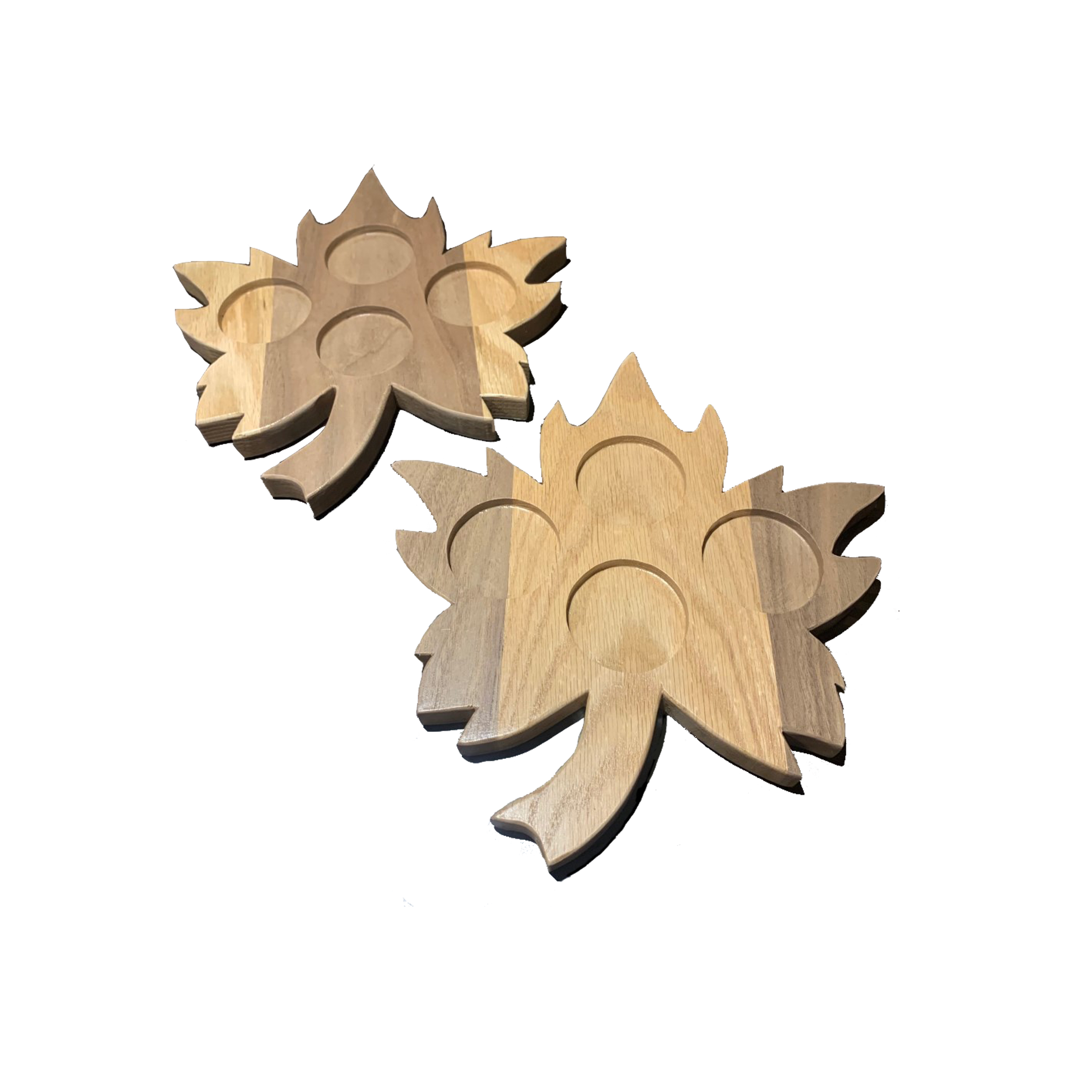 These hardwood beer flights are made of walnut and white oak, with a maple leaf design to show your patriotic side.